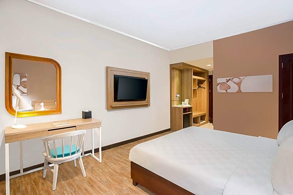 The spacious twin/double room offers air conditioning, a mini-bar, a tea and coffee maker, a wardrobe, as well as a TV. The unit has 1 bed.
