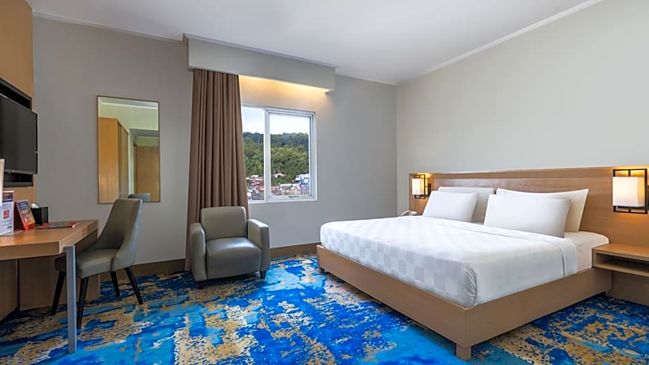 The air-conditioned double room provides a TV, a mini-bar, a tea and coffee maker, a wardrobe as well as city views.